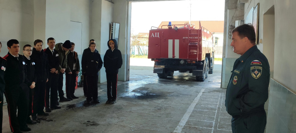 В рамках проведения «Недели безопасности» ученики казачьей школы 25 города-героя Новороссийска посетили пожарную часть в ст. Натухаевской. Командир отделения пожарно-спасательной части Дмитрий Геннадьевич Фарбитников провёл урок безопасности. Он рассказал детям о профессии пожарного, об опасности, которую несёт с собой огонь, о Правилах пожарной безопасности и правилах поведения при пожаре. Показал боевую одежду пожарного и снаряжение, продемонстрировал работу спасательного устройства.